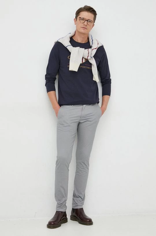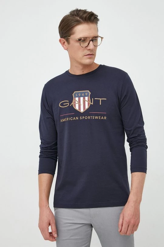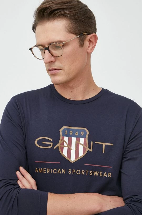 Ανδρικά Μακρυμάνικα Βαμβακερή μπλούζα με μακριά μανίκια Gant μαύρο